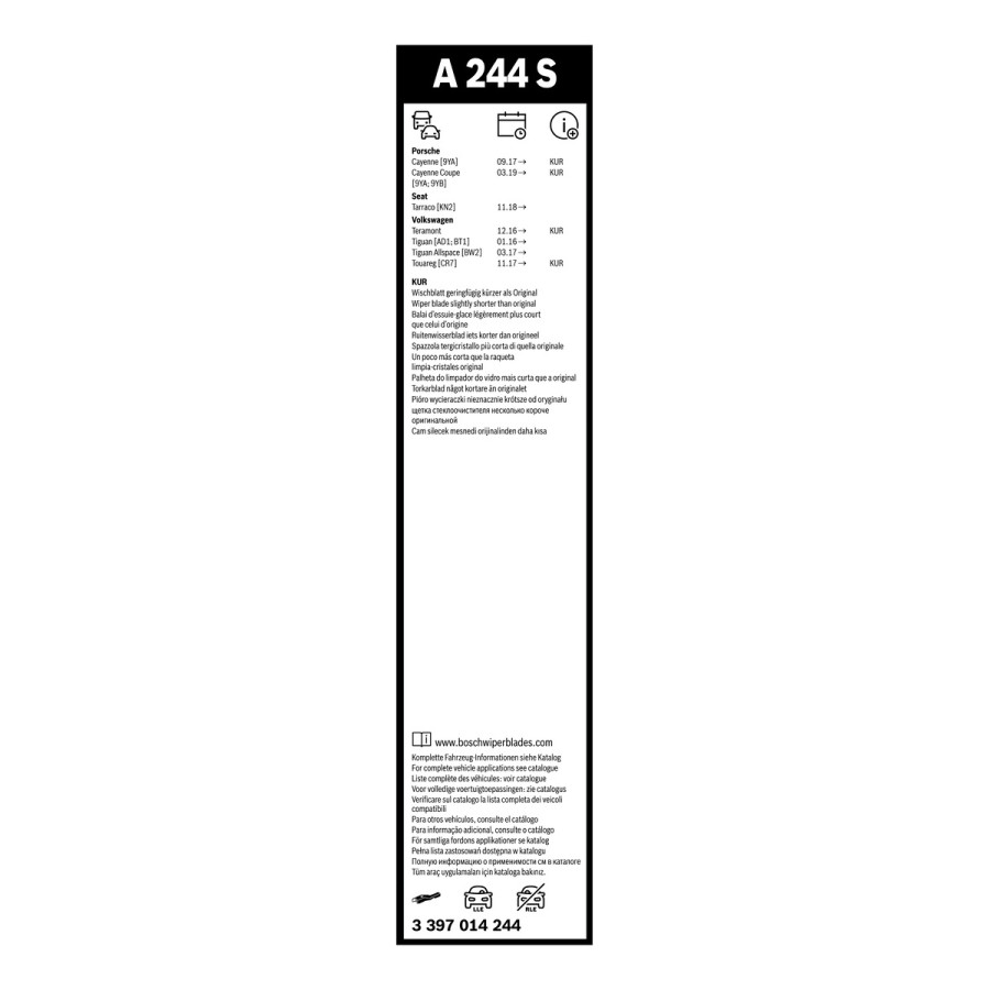 Bosch windshield wipers Aerotwin A244S - Length: 625/550 mm - set of wiper blades for