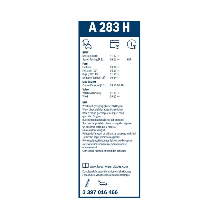 - Innovative Bosch wiper rubber technology: for better, quieter and longer wiping performance