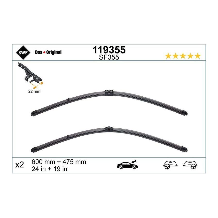 Windscreen wipers A3/Golf V/Caddy 119355 SWF