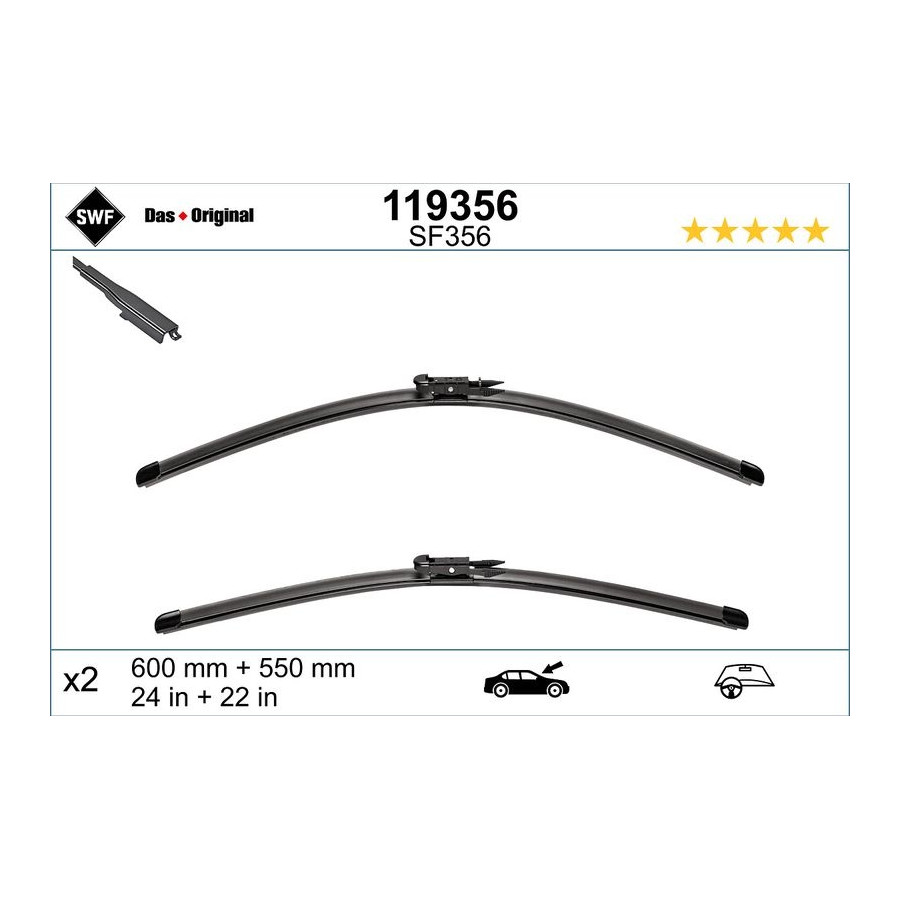 Brand: SWF Visioflex Driver position: For left-hand drive vehicles Length 1/2 mm: 600/550 Packing unit: 00001 Brand nr: 356 Brand: SWF Info: from year of construction: 200403, The product may differ from the photo